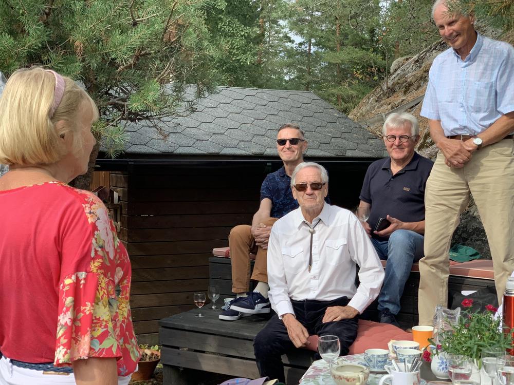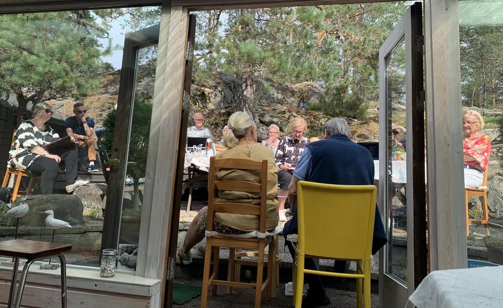 Vuosikokous järjestettiin pandemia-aikaan ulkotiloissa Ehnholmin perheen kesäasunnolla Kunnarlassa.